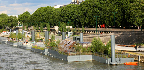 J’avais entendu parler de l’aménagement des berges de la Seine rive gauche, entre le Musée d’Orsay et le quai de l’Alma. Depuis juin dernier, elles sont désormais fermées aux voitures et réservées aux piétons et aux cyclistes. Cet aménagement a été controversé aussi bien pour la circulation des voitures et taxis que pour le coût (coût des travaux de l’aménagement des berges rive gauche et rive droite : 35 millions d’euros + coût de fonctionnement annuel de l’ordre de 5 millions). Mais ceci est un autre débat ! Par curiosité, nous y sommes allés en famille, peu de temps après notre ré-installation sur Paris.