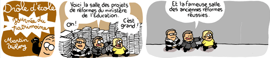 Les 3 dessins sont de Martin Vidberg (ancien professeur des écoles, avant de devenir dessinateur à temps plein).