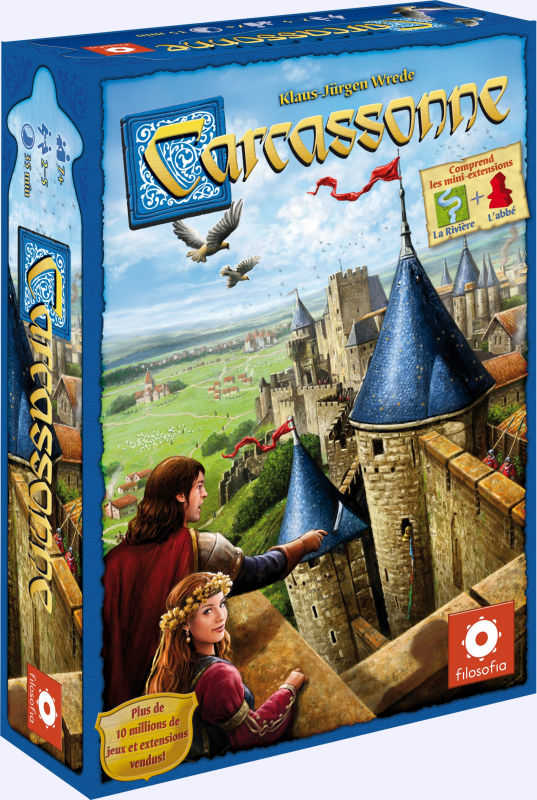 Carcassonne_large01Carcassonne  : à partir de 8 ans, 2 à 5 joueurs. Un jeu de stratégie : l’objectif est de construire à l’aide de tuiles des forteresses, des chemins, des champs, tout en étant tactique et en empêchant son adversaire de trop se développer. Possibilité d’acheter de nombreuses extensions pour rendre le jeu plus complexe et plus tactique.